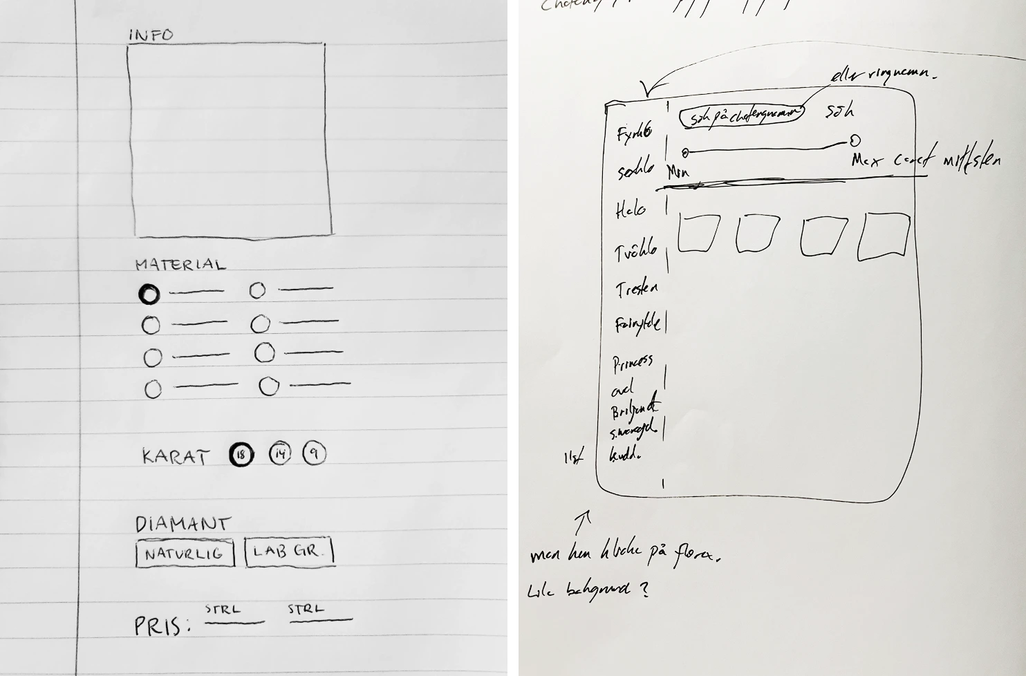 Early in the project, I created sketches and wireframes for the main screens and components of the app, which I used to communicate my ideas to the team and get feedback. Sketching was also a valuable tool for the product owner to communicate his ideas to me, especially in areas where my understanding was limited.