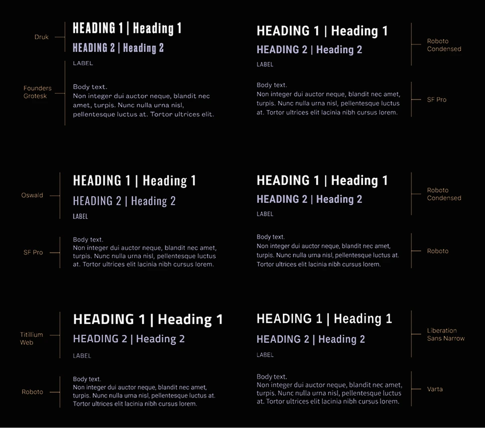 To preserve the desired brand feel, I selected options that closely resembled the originals. Additionally, I explored fonts within the same visual category. As a team, we finalized our choice and settled on a favorite set (Roboto Condensed and SF Pro).