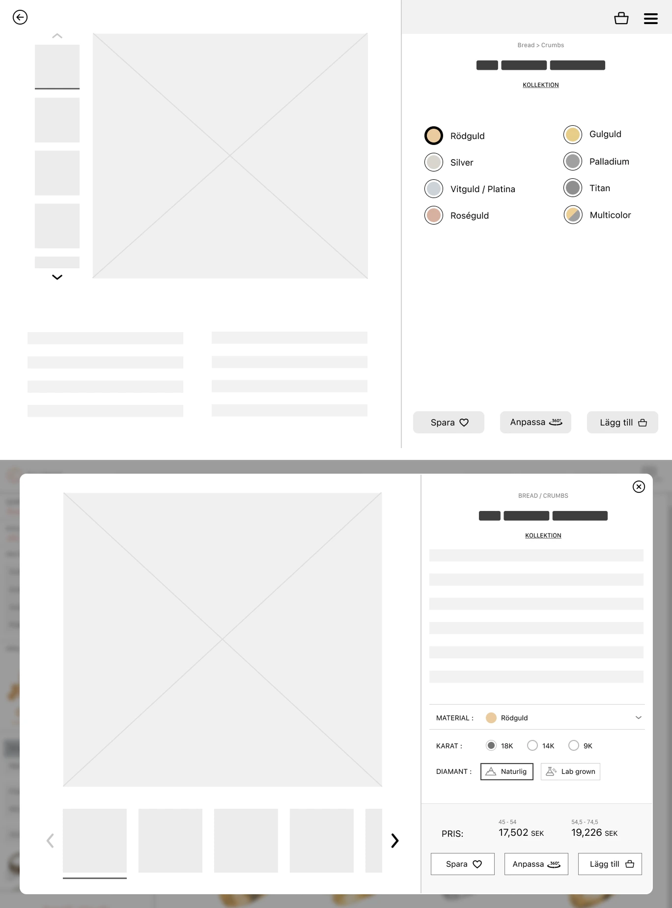 Enhanced visual feedback on the choices made, with a focus on customer choices rather than data for store staff. The image gallery is now more prominent. The "Add to favorites" function was removed since it wasn't used.