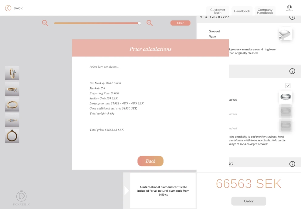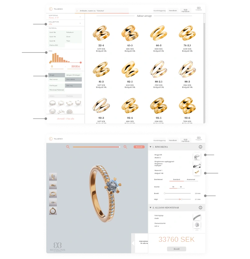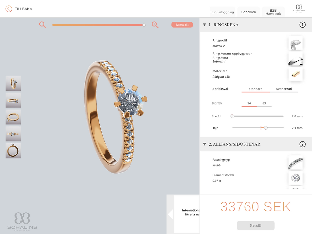 During my internship as part of my UX design education, I worked on the latest version of Schalins Ringar's ring design app.